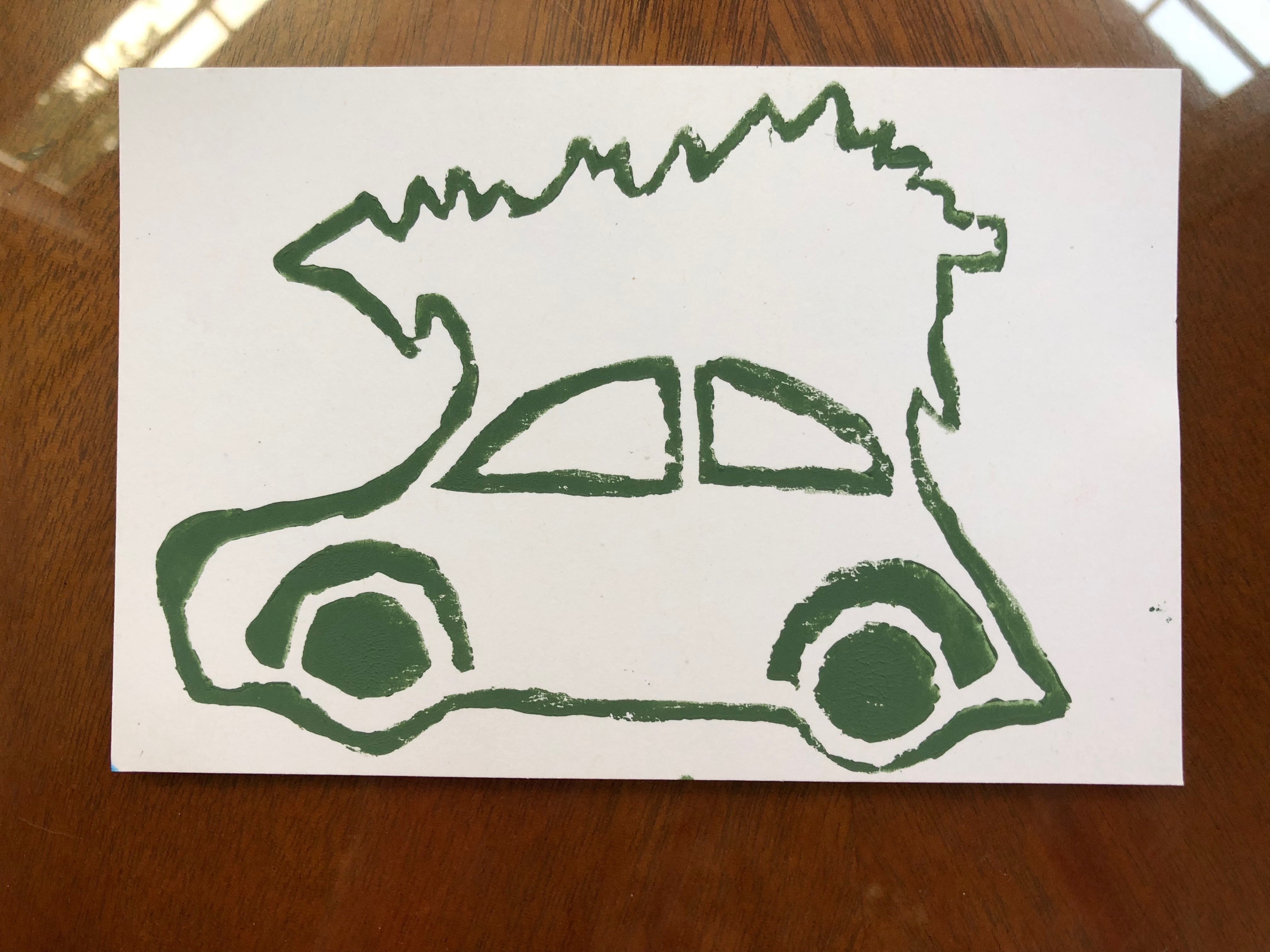 Christmas Tree on Car Stamp Print Green: Ink